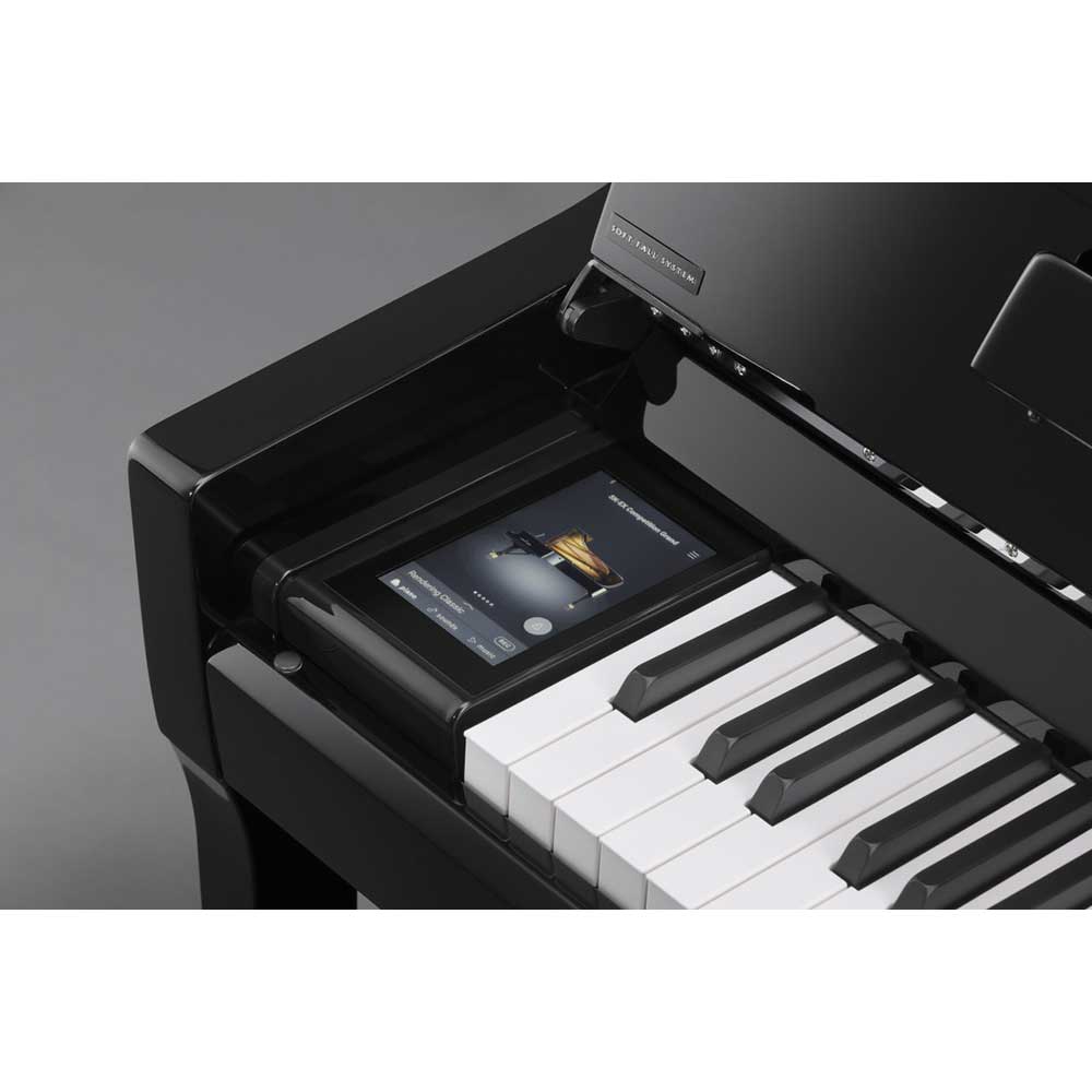 Digital piano convenienceWhile the Novus NV6's core features are unquestionably derived from an acoustic piano, the instrument neatly incorporates various additional technologies that provide the modern conveniences of a premium digital piano. These features are primarily controlled through the NV6's touchscreen LCD, which is discretely embedded within the instrument's left cheekblock. This high resolution touchscreen allows sounds and settings to be adjusted from an attractive user interface simply by tapping or swiping the display with a finger. For piano purists, the screen can be set to turn off automatically while playing, thus preserving the Novus' classic appearance, and minimising any visual distraction to the performer.