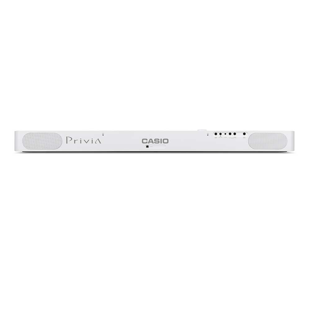 The slim and stylish body differentiates the Privia from other electronic pianos in its class. By making full use of the digital technologies Casio has developed over the years, the new Privia offers a high-quality keyboard touch and an elegant sound, but in a 20% slimmer (depth from front to back) body than the previous model (PX-160). The operating panel also employs illuminated touch sensor controls that disappear when powered off, delivering a simple and elegant button-less design. The compact design is complemented by optional 6xAA battery power, making the PX-S1000/3000 the most truly portable Privias to date.