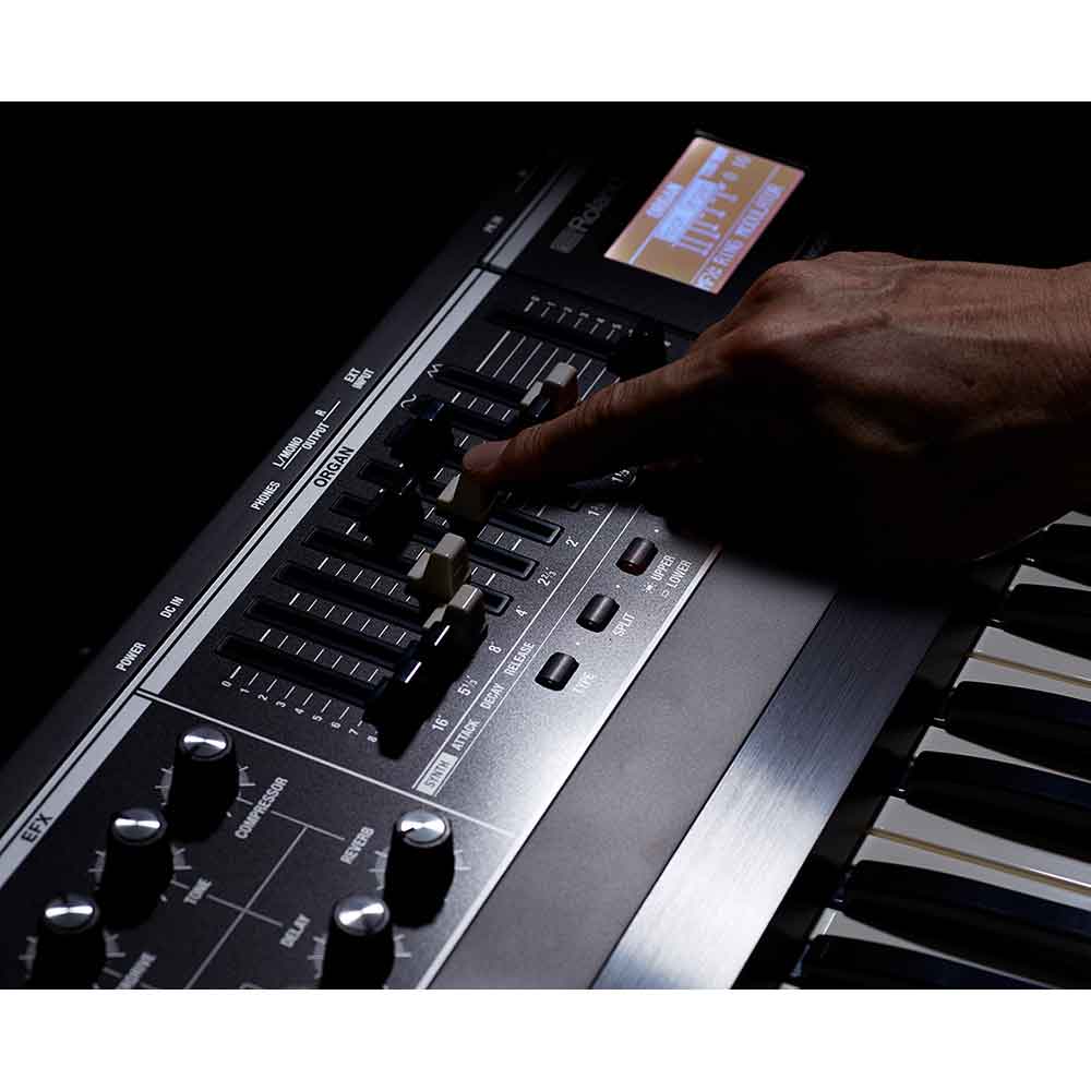 Piano is a cornerstone sound for live playing, and the VR-09-B provides a wide selection for covering all musical styles. Many historic electric piano types are on board, along with complementary vintage effects like phaser, tremolo, touch wah, and tape delay. The gorgeous acoustic grand piano features 88-note stereo multi-sampling, delivering pro-level tone that rivals Roland’s dedicated stage pianos. The VR-09-B’s easy-access compressor effect works great with the piano sounds, ensuring that your playing always cuts through when performing with loud bands and big ensembles.