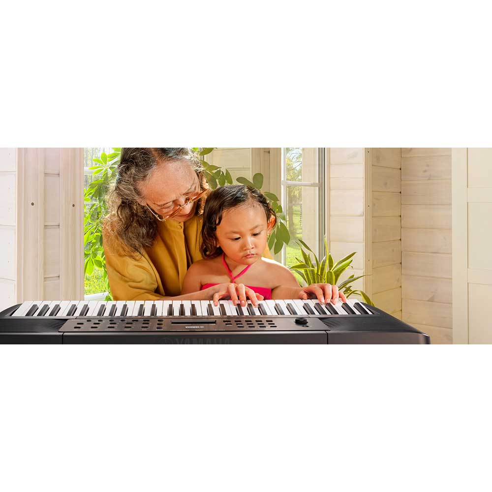 Get in on the excitement and fun! Yamaha's entry keyboard for beginners motivates and entertains you at the same time—taking your playing to a higher level. The PSR-E283 gives you all the tools to enjoy and practice, even for the first time, with 410 authentic instrument Voices, fun sound effects, and stimulating Lesson functions including a Quiz Mode.